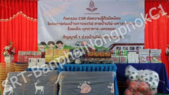 การรถไฟแห่งประเทศไทย กิจการร่วมค้า เอเอส-ช.ทวี แอนด์ แอสโซซิเอทส์ บริษัท ช.ทวี ก่อสร้าง จำกัด บริษัท พาราโบลิก ชิตแต็มส์ อินเตอร์เทค จำกัด ร่วมสนับสนุน ขนม และน้ำดื่ม ในกิจกรรมงานวันเด็กแห่งชาติ |